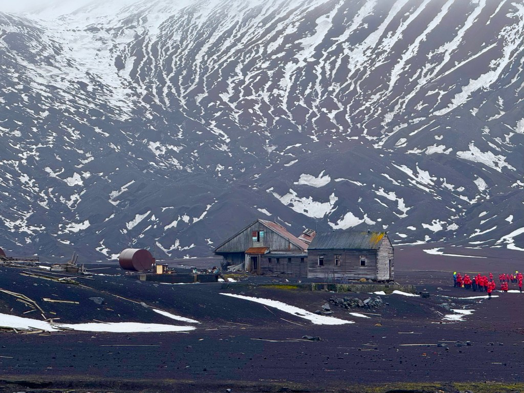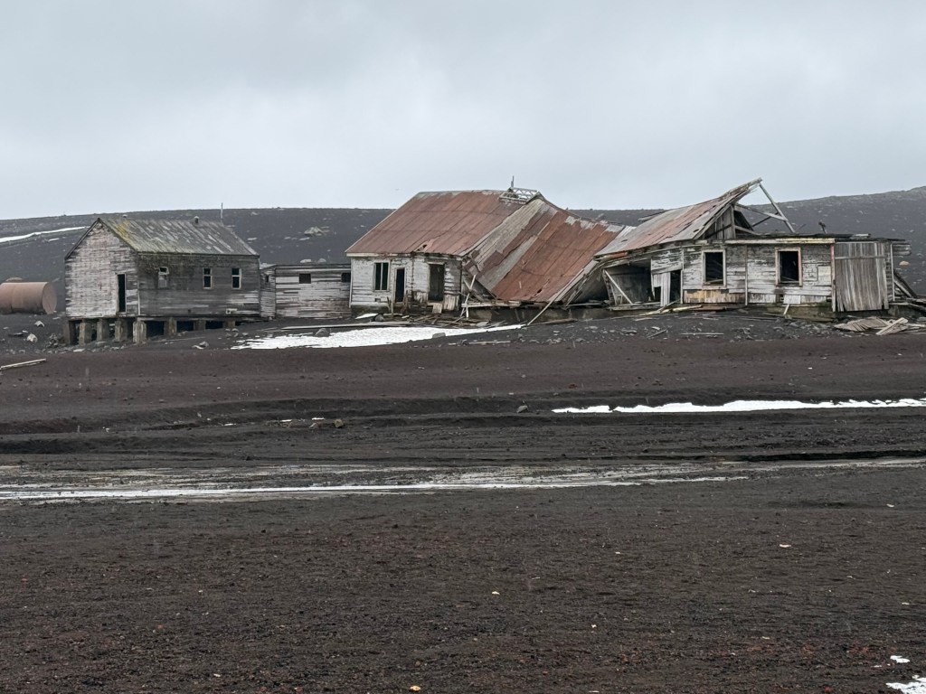 Deception Island is located in the Bransfield Strait, close to the South Shetland Islands. It is a volcanic island that was home to a bustling seal hunting industry (1830 – late 1800’s). In the early 1900’s the industry shifted to whale hunting and processing.