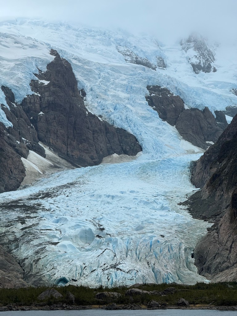 Pio XI Glacier is located at the terminus of the Eyre fjord. It is the largest western outflow of the Southern Patagonian Ice Field. It is South America’s longest glacier at 4.5 km across and 91.5 m high. It is also a rare advancing glacier. Not landing near this one… it was super active. Thunder then calving nearly every 5 minutes.